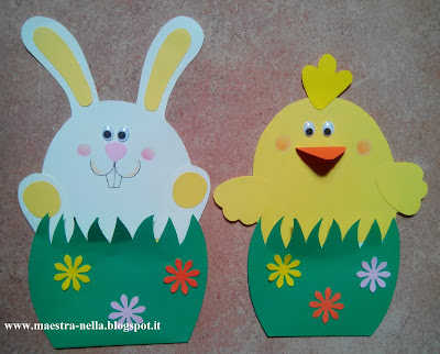 Basta pochissimo tempo per realizzare questi biglietti di buona Pasqua.... Un cartoncino colorato, la tempera marrone per dipingere i rami, i fiori realizzati con le fustelle , una poesia scritta a mano o al computer e... il biglietto è pronto.